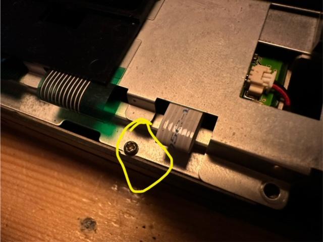 18) Remove the one screw in a deep hole in darkness, up by the USB port