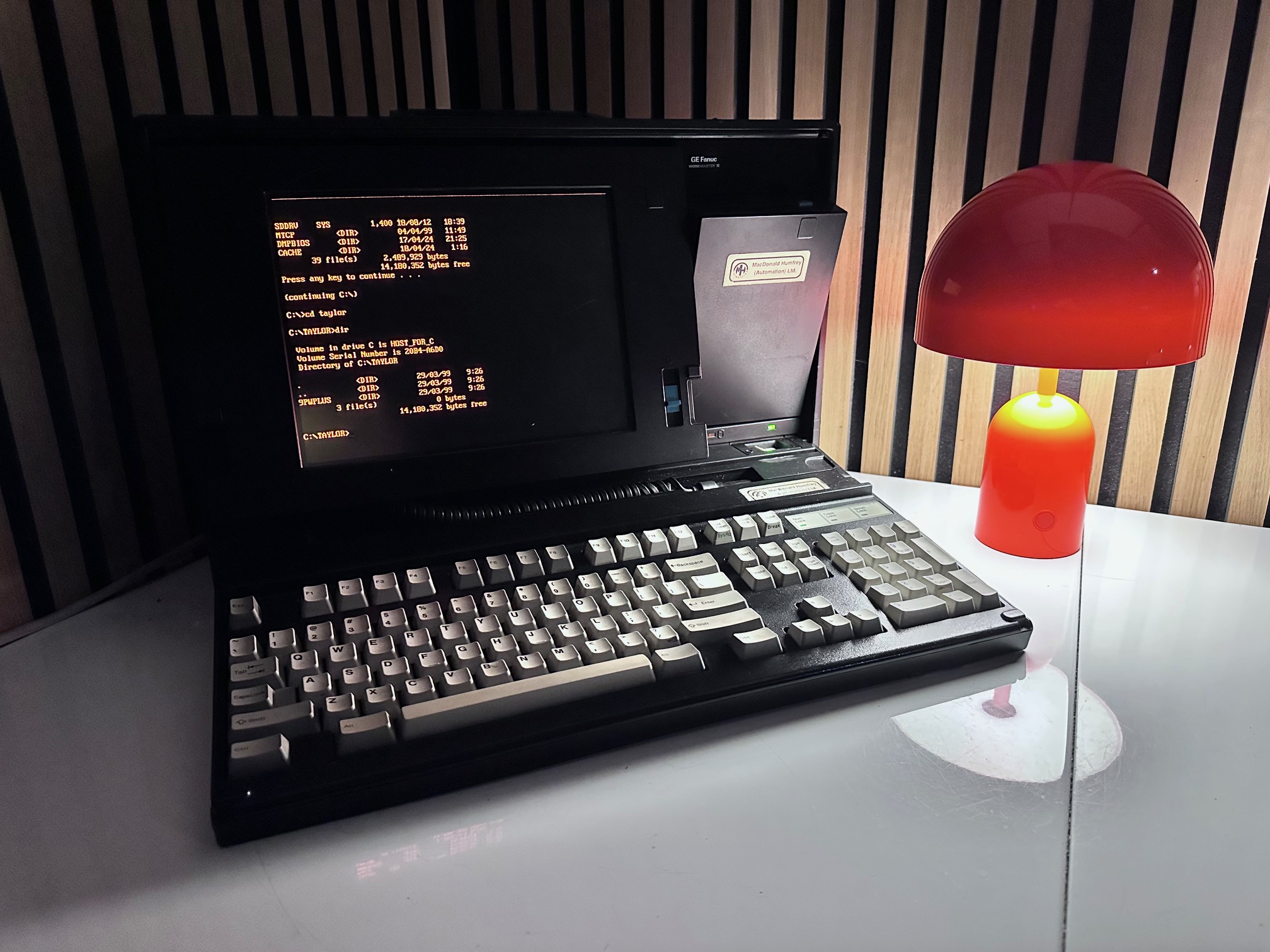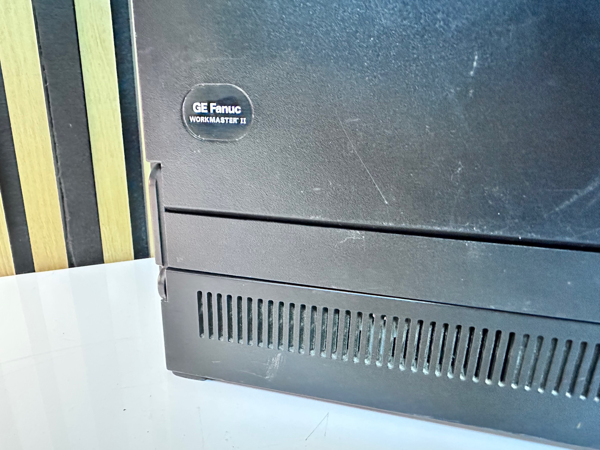 First came GE's Program Development Terminal which was a huge, ancient proprietary computer built into a desk. The PDT tipped the scales at 45kg. The PDT was superceded by the Workmaster I, which was a black modified IBM 5155 CRT-equipped Portable (or Sewing Machine) computer. The Workmaster I was introduced around 1986 as a DOS-based programming tool for GE Fanuc Programmable Controllers. Prior to that, you needed a dedicated prgrammer. GE was among the first to introduce software for PLCs that could run under DOS. The Workmaster 1 had a unique keyboard specific to GE, but the Workmaster II simply has a standard P70 keyboard, albeit encased in black moulded plastic. There was no Workmaster III as GE developed software which most IBM/PC-compatible machines would support and carried data over standard RS-232 serial.