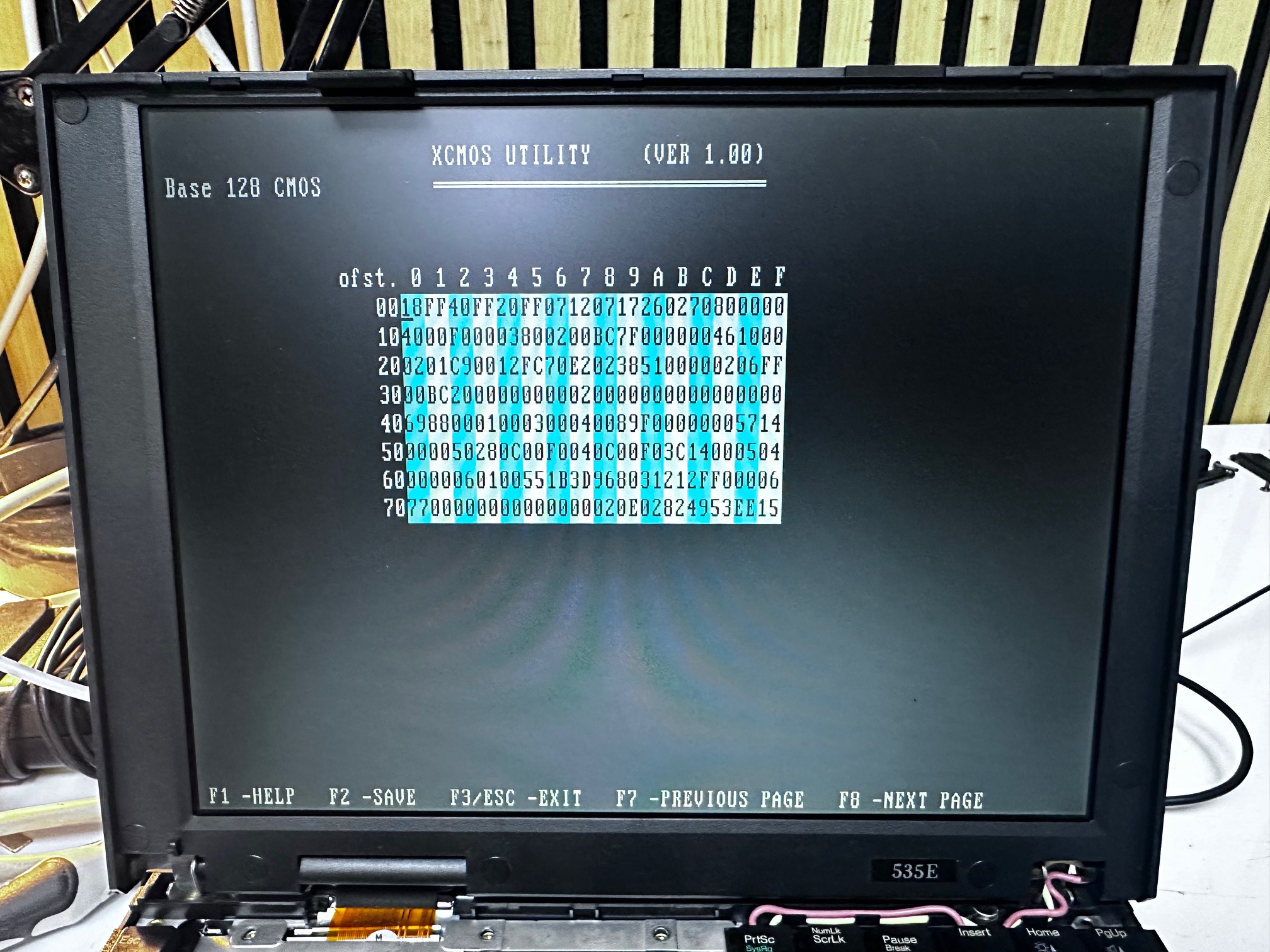 - In the CMOS hex editor that opens, use your arrow keys to go down to the third row (starting with prefix "20")