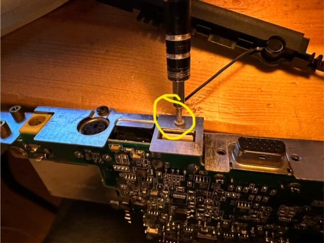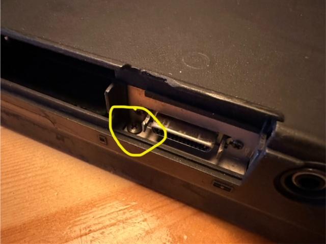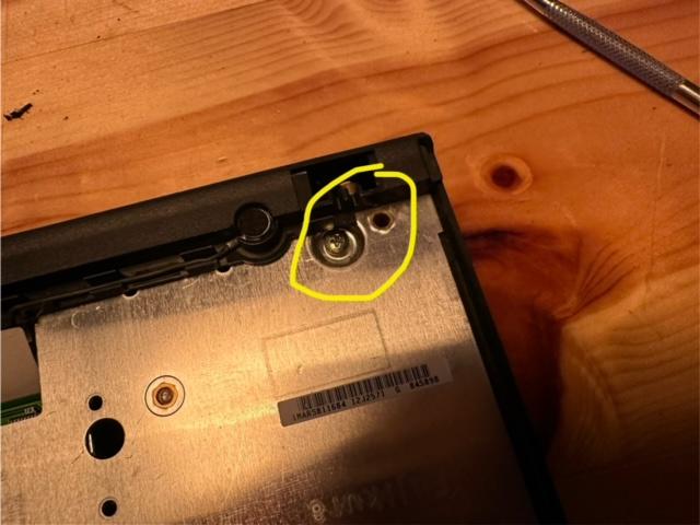 18) Remove the one screw in a deep hole in darkness, up by the USB port
