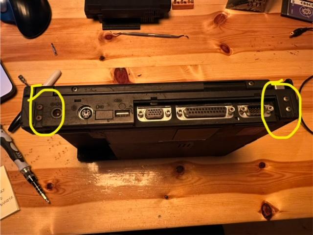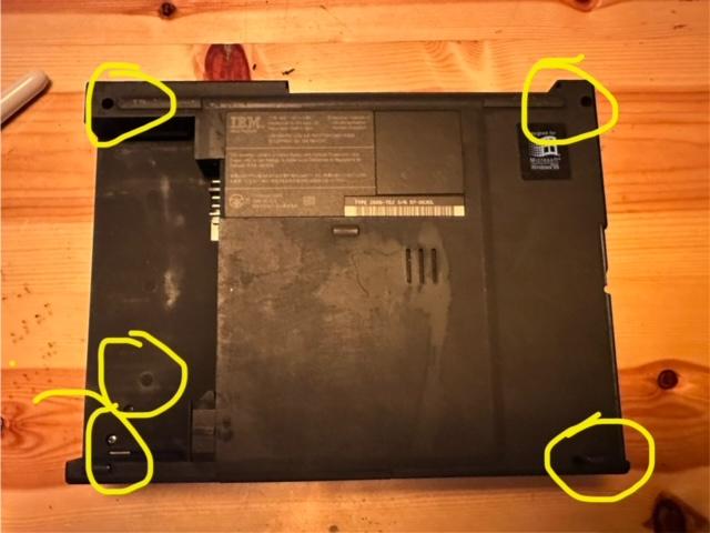 9) Remove all 7 silver screws around the keyboard (not highlighted in the pic but you can see 4 at the bottom and 3 at the top)