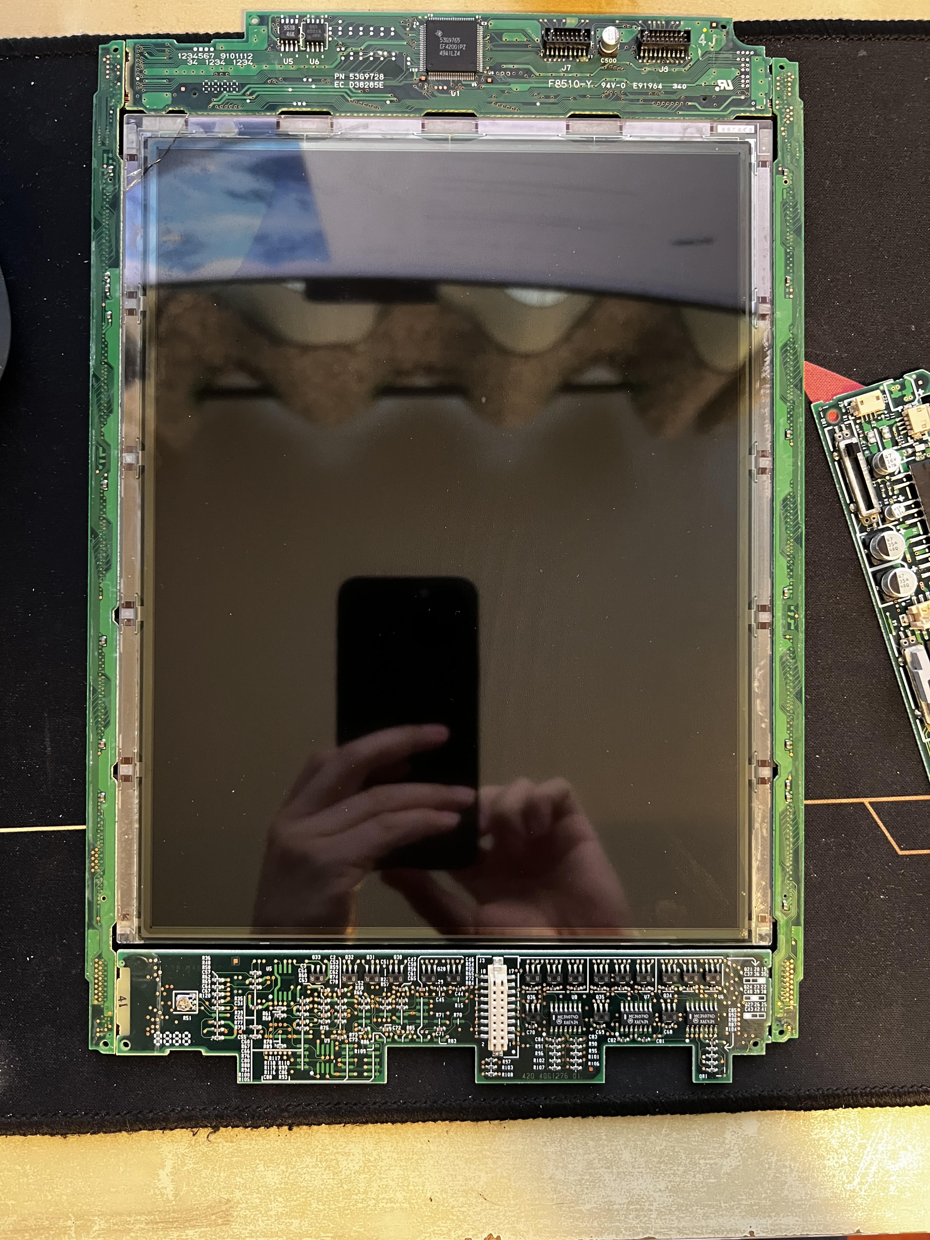 Disassembly and reassembly of the LCD is pretty straight forward, and one thing you need to be careful about is that the connector connecting inverter board PN53G9730 and the screen panel (white one on the bottom of the picture). It's tight ,and you cannot see it while removing the inverter board.