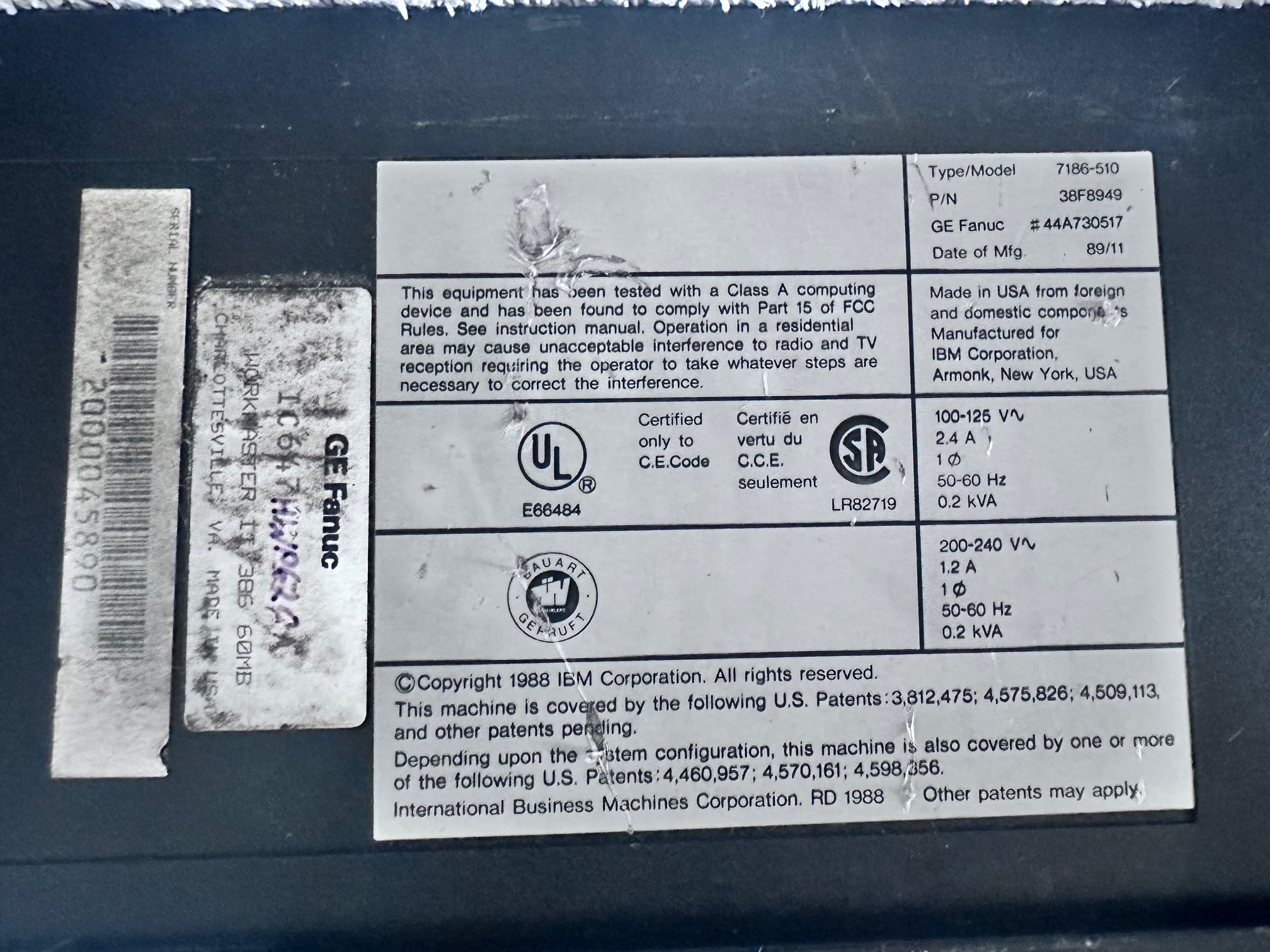 The GE Fanuc WorkMaster II is a unique variation on IBM's 386 PS/2 P70 gas-plasma luggable, somewhat similar to the Compaq Portable III. It was intended to be used to program GE Series Six Programmable Logic Computer (PLC), which is an industrial computer that has been ruggedized and adapted for the control of manufacturing processes, such as assembly lines, machines, robotic devices, or any activity that requires high reliability, ease of programming, and process fault diagnosis.