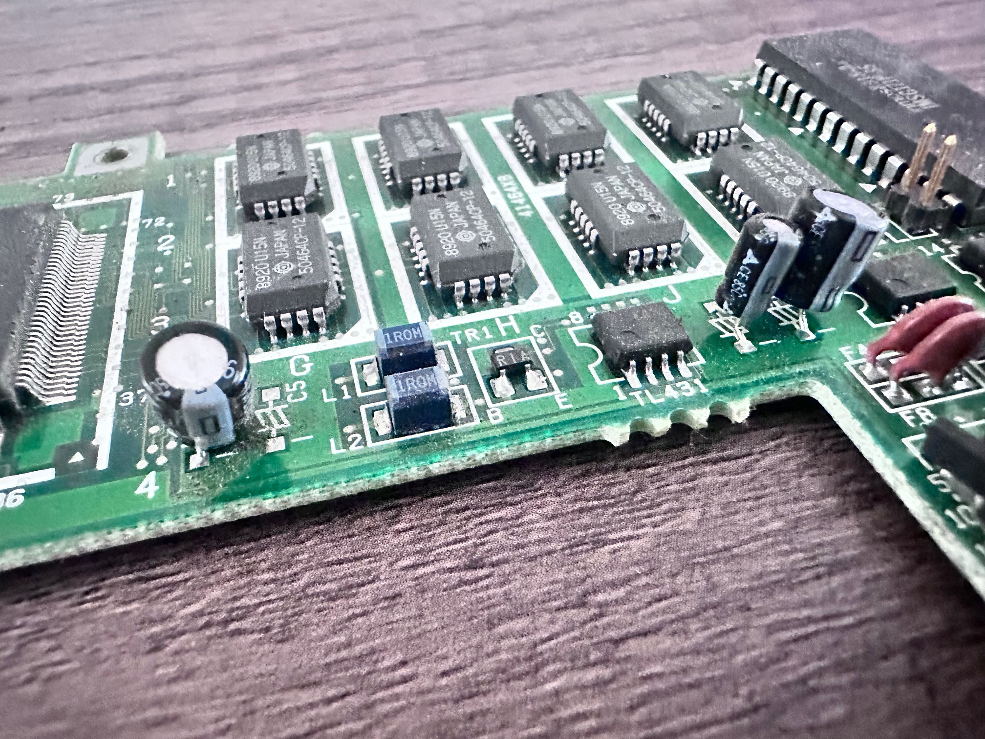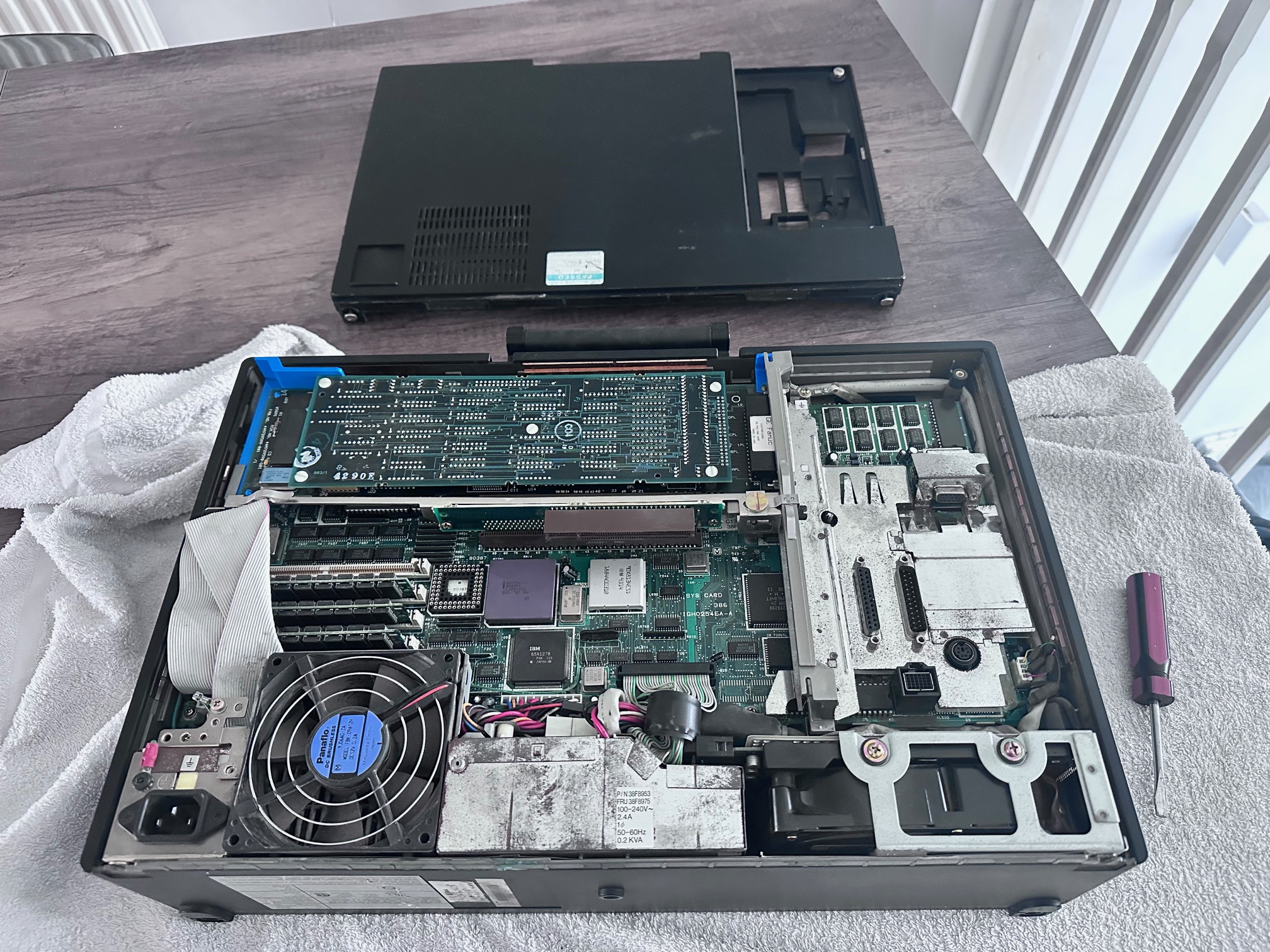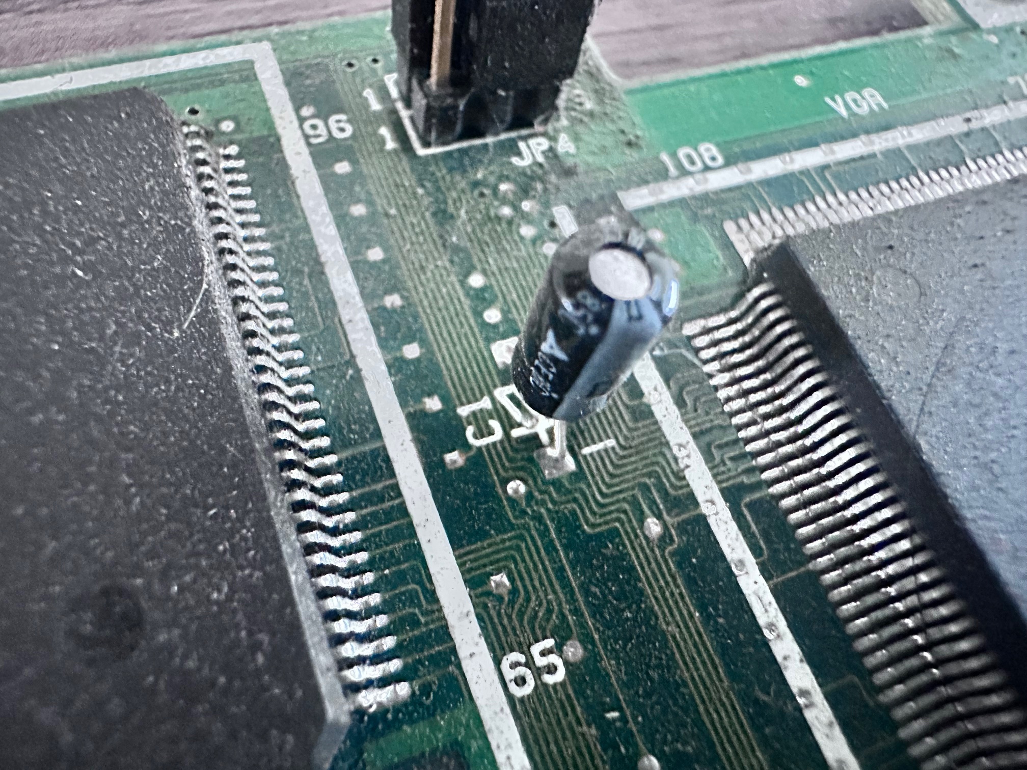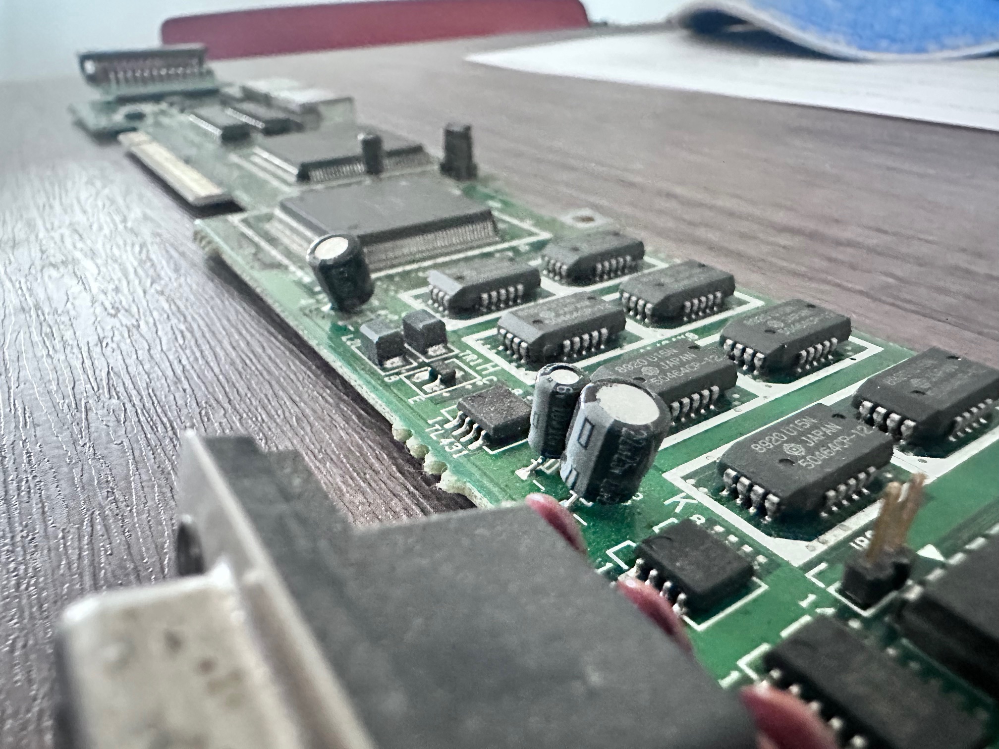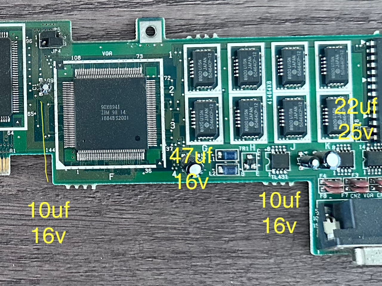 Since I owned the machine, having been around a few other P70 machines, I'm aware there are two places where capacitor rot can cause unrecoverable damage - three surface mounted capacitors on the hard drive and several on the video board. I've taken photos above showing both sets being replaced, which in this case was relatively simple. The solder on these older IBM boards can be hard to shift, but if you know what you're doing and go gently, it can be de-soldered and re-soldered.