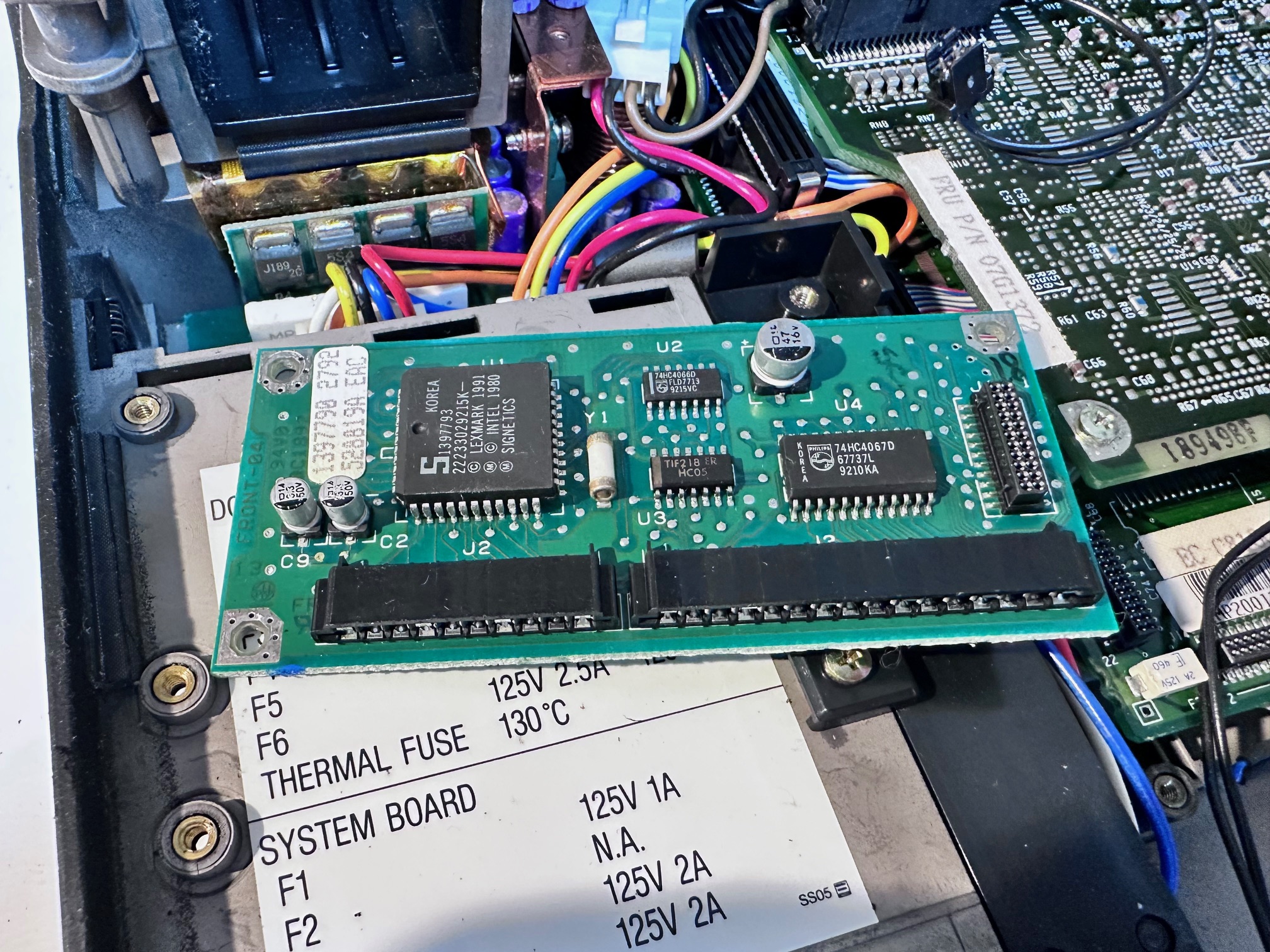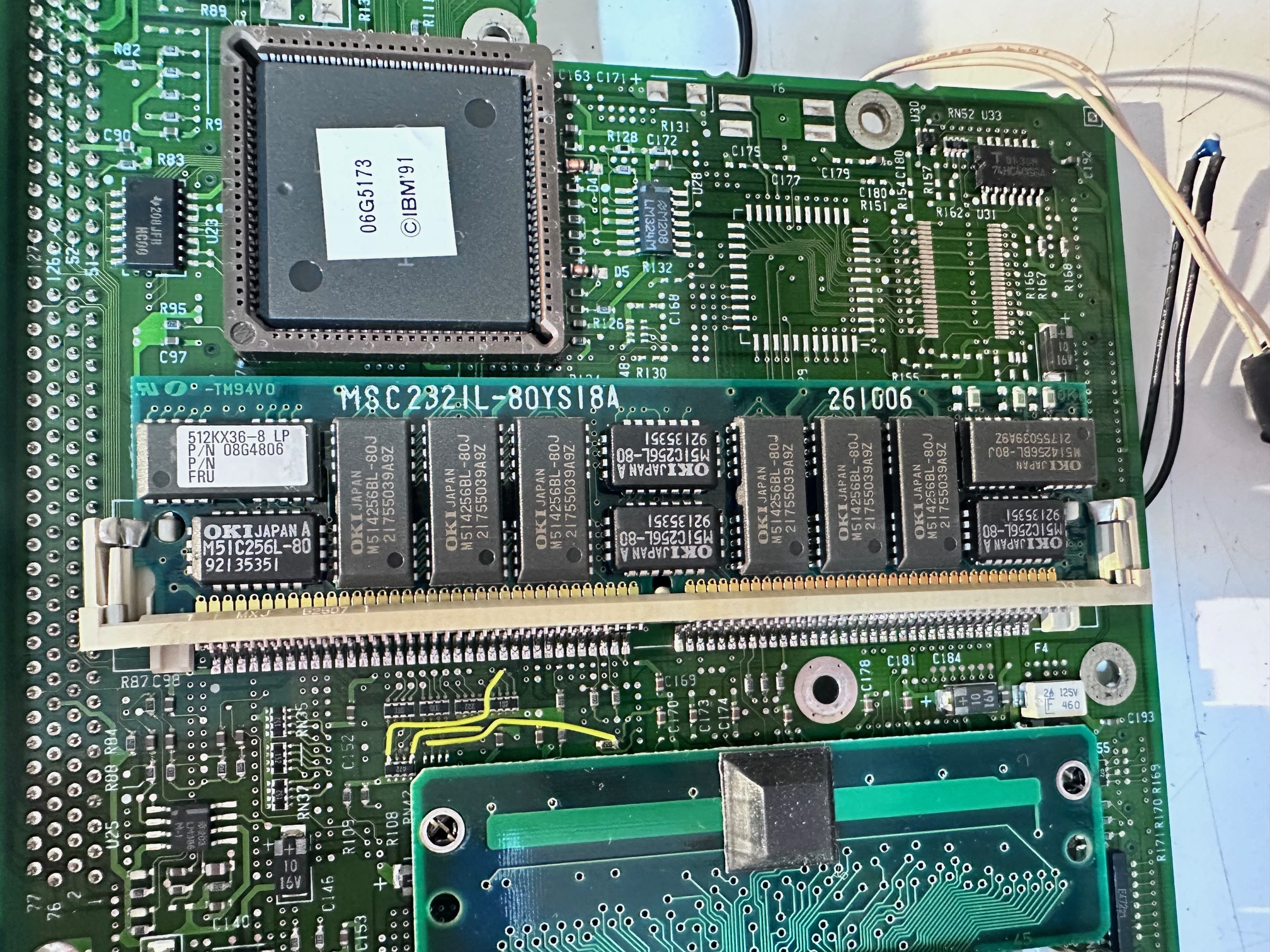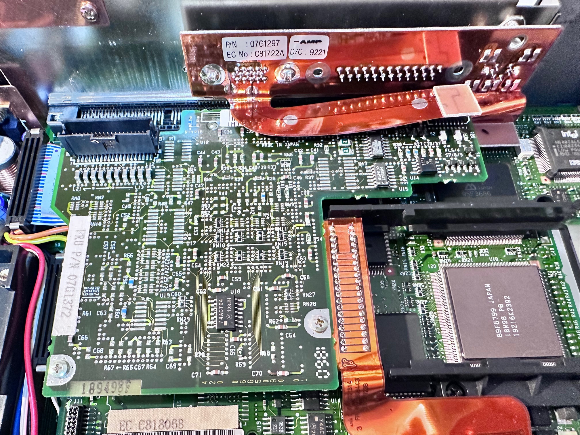 The motherboard doesn't have any electrolytic caps of any sort. So nothing to change, but I took a couple of photos for reference. Note the IC DRAM daughterboard is on the bottom...