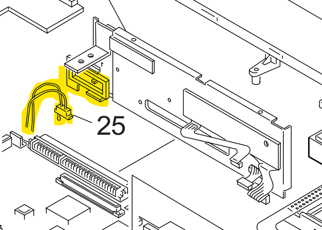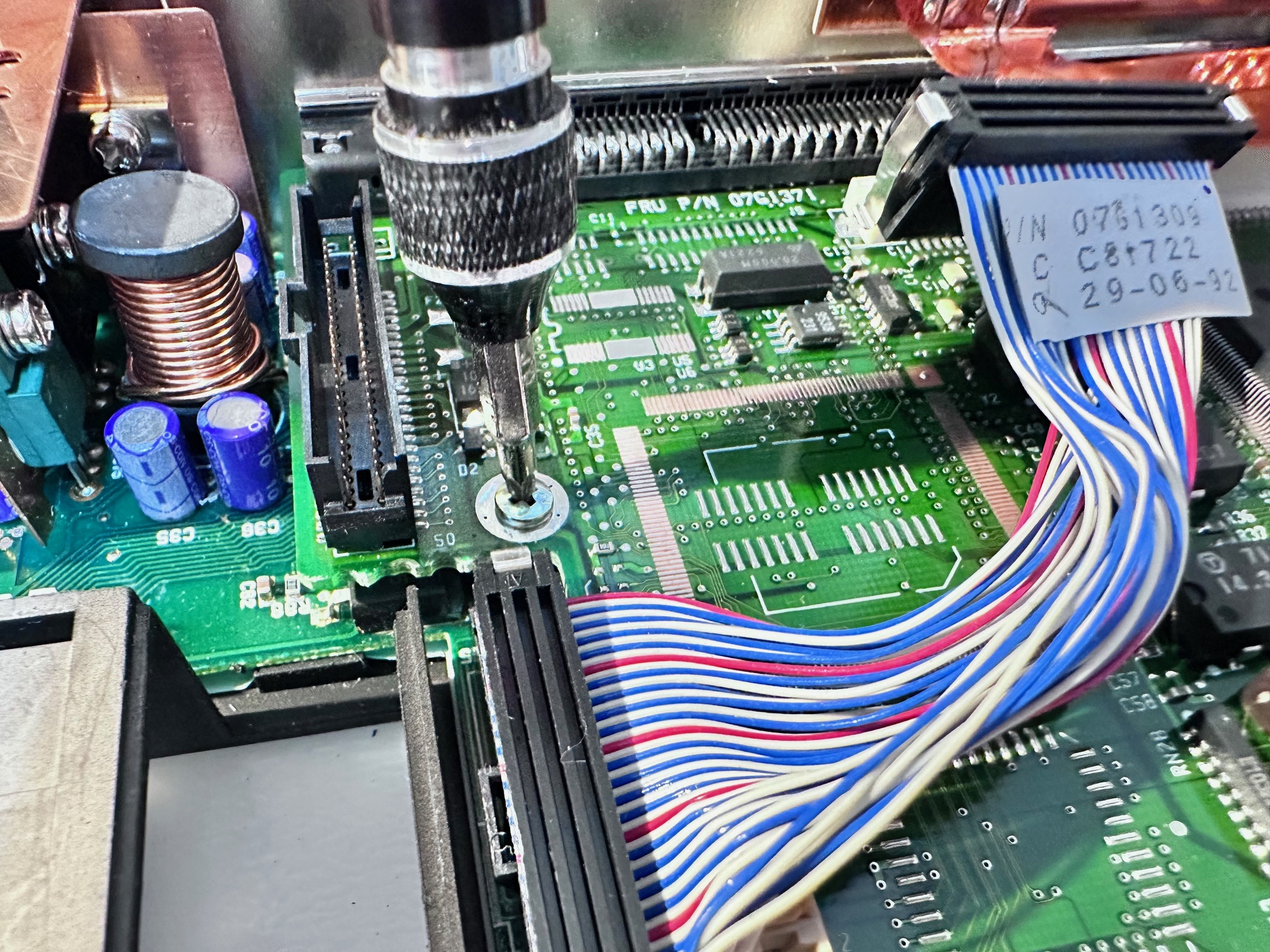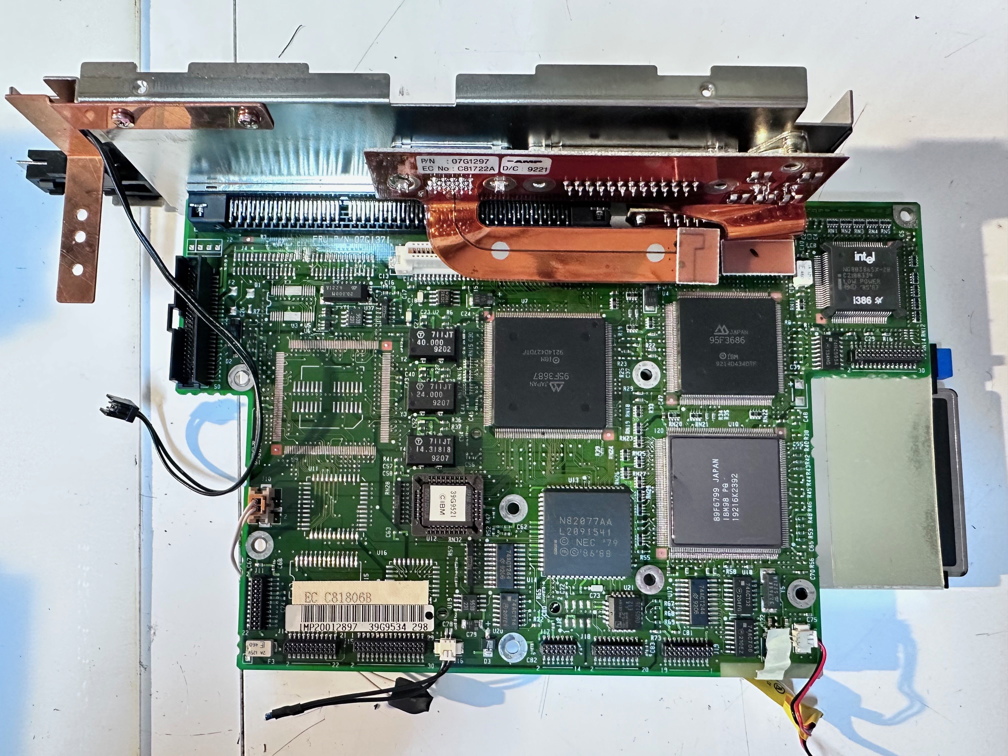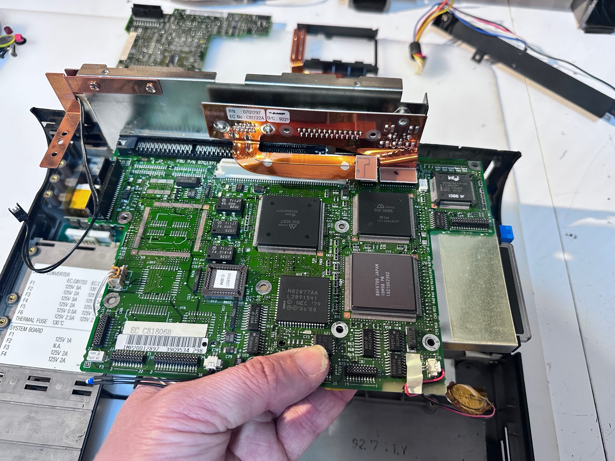 The motherboard doesn't have any electrolytic caps of any sort. So nothing to change, but I took a couple of photos for reference. Note the IC DRAM daughterboard is on the bottom...