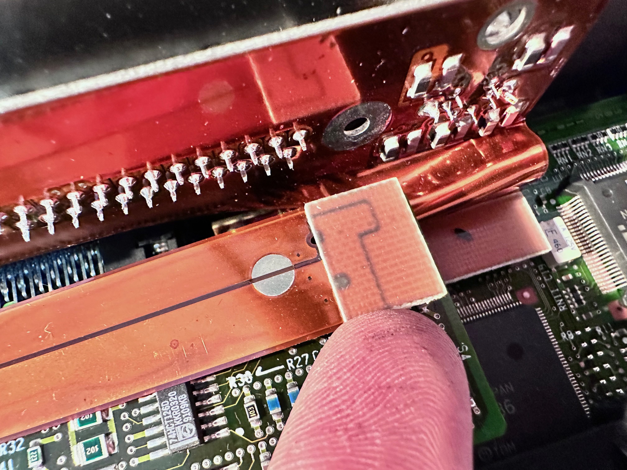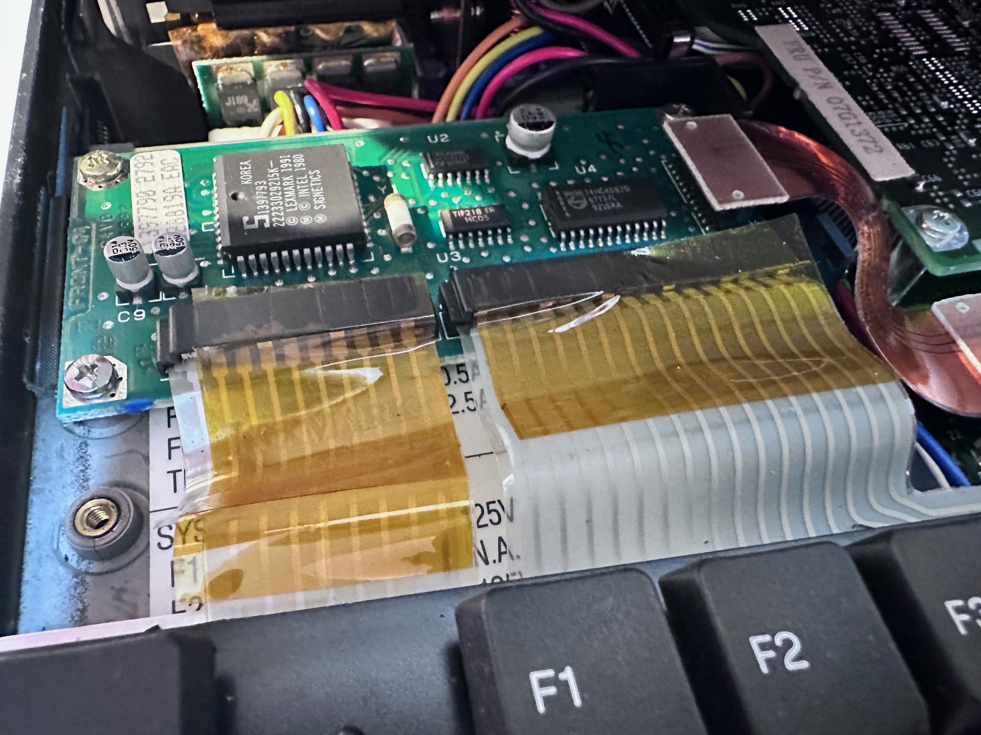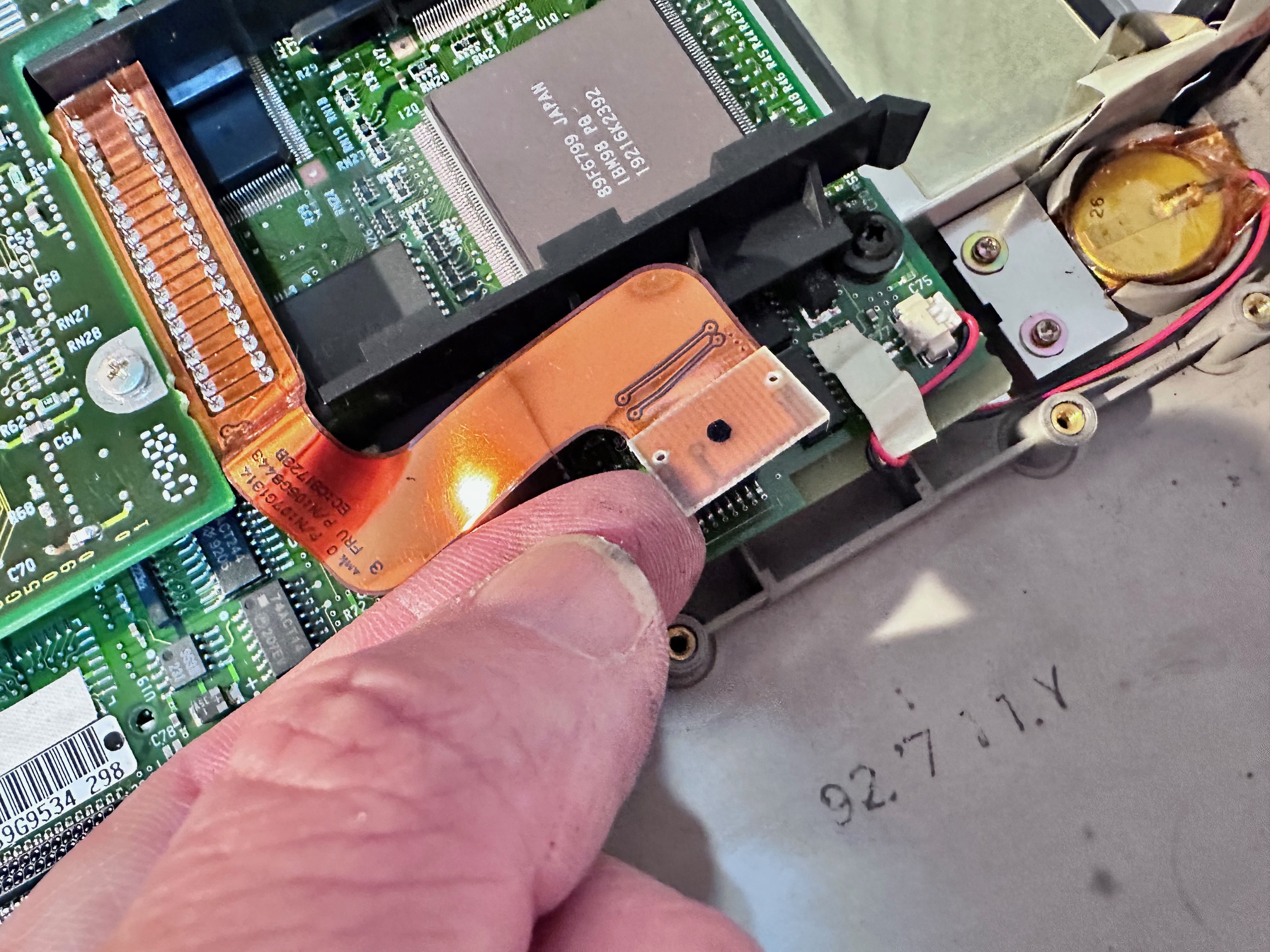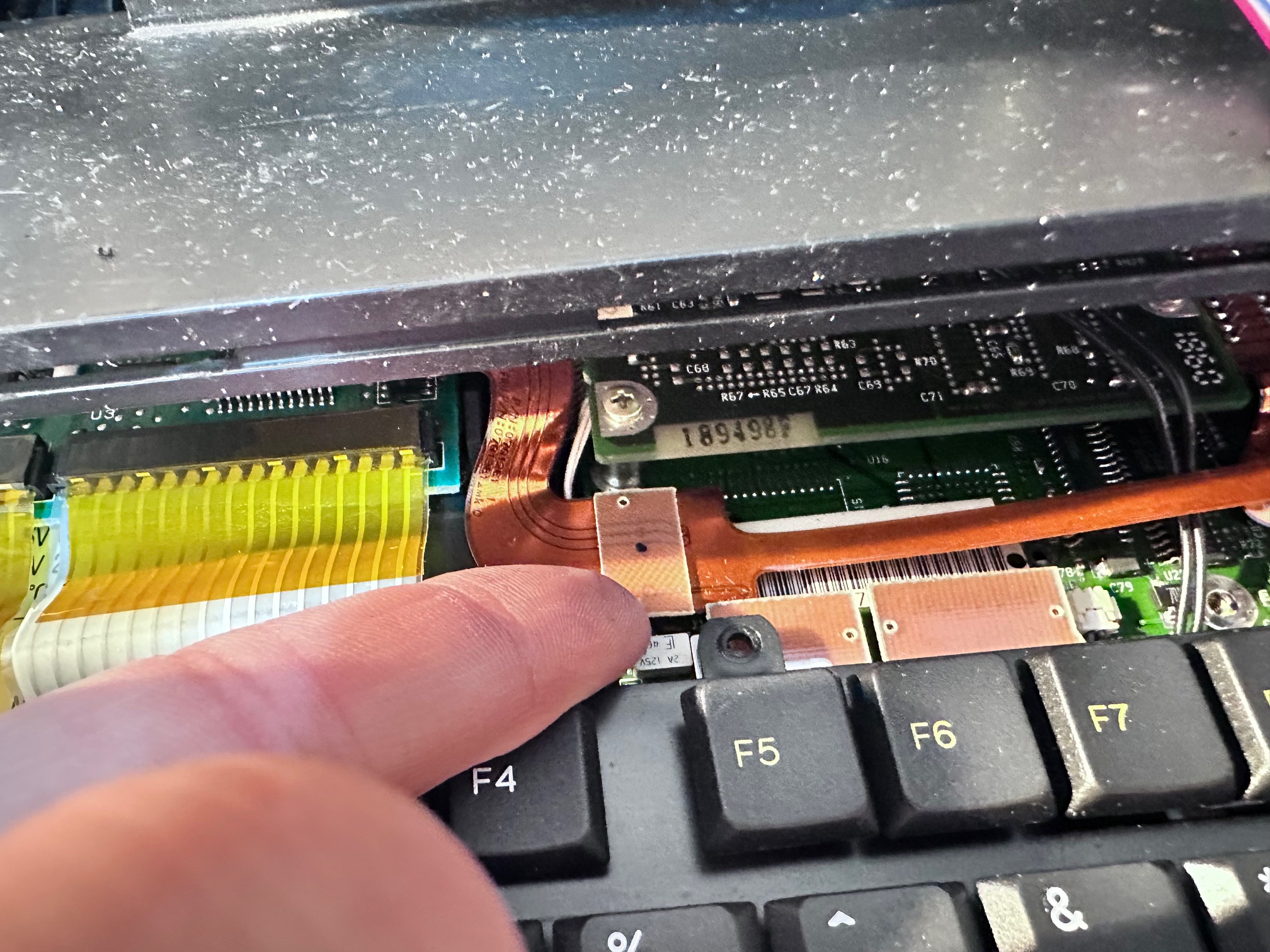 22 - Remove tape off the top of the two keyboard ribbons and pull out the friction connection cables: