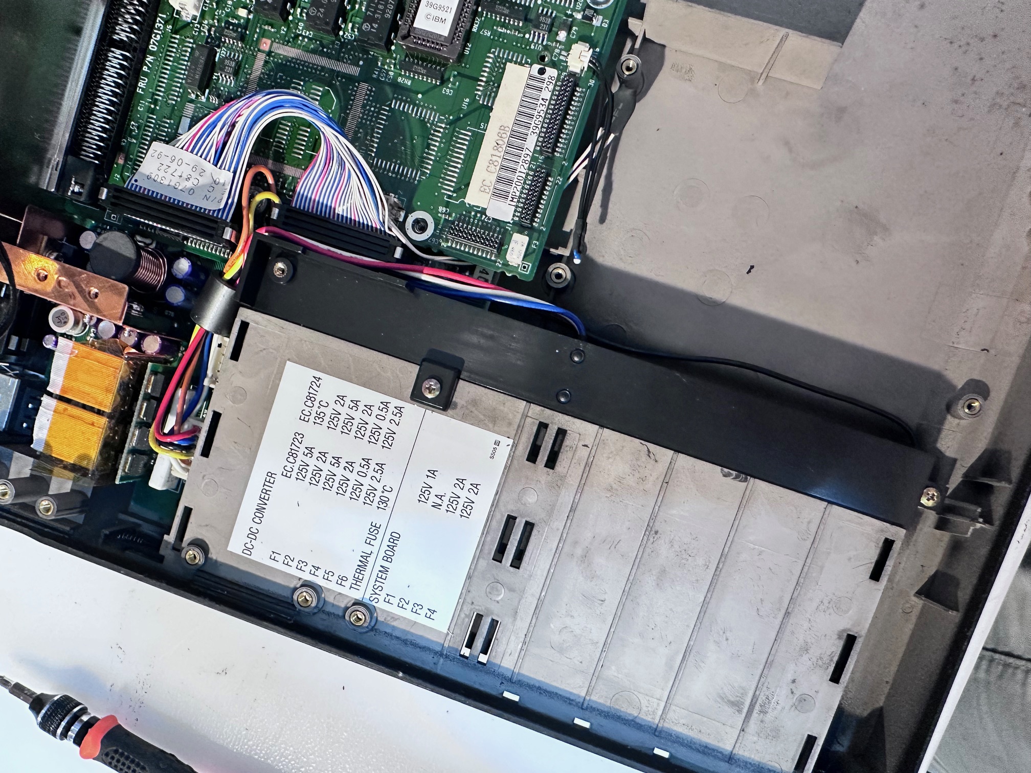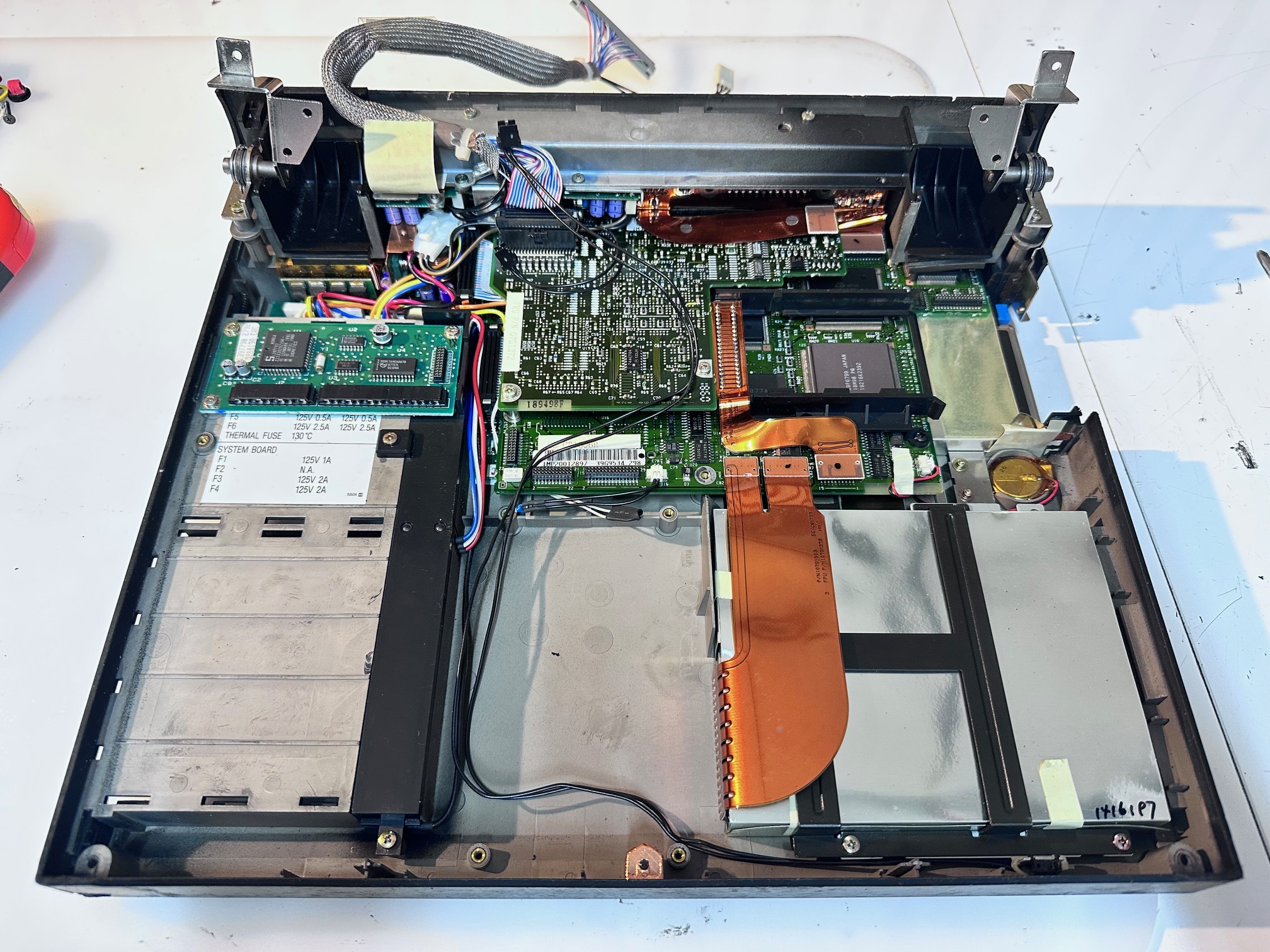 This is a massive, stange, outlier in IBM's journey into portable personal computers. CL for 'Color Laptop' and 57 for....... fuck knows. The type is 8554 and it runs MCA bus.