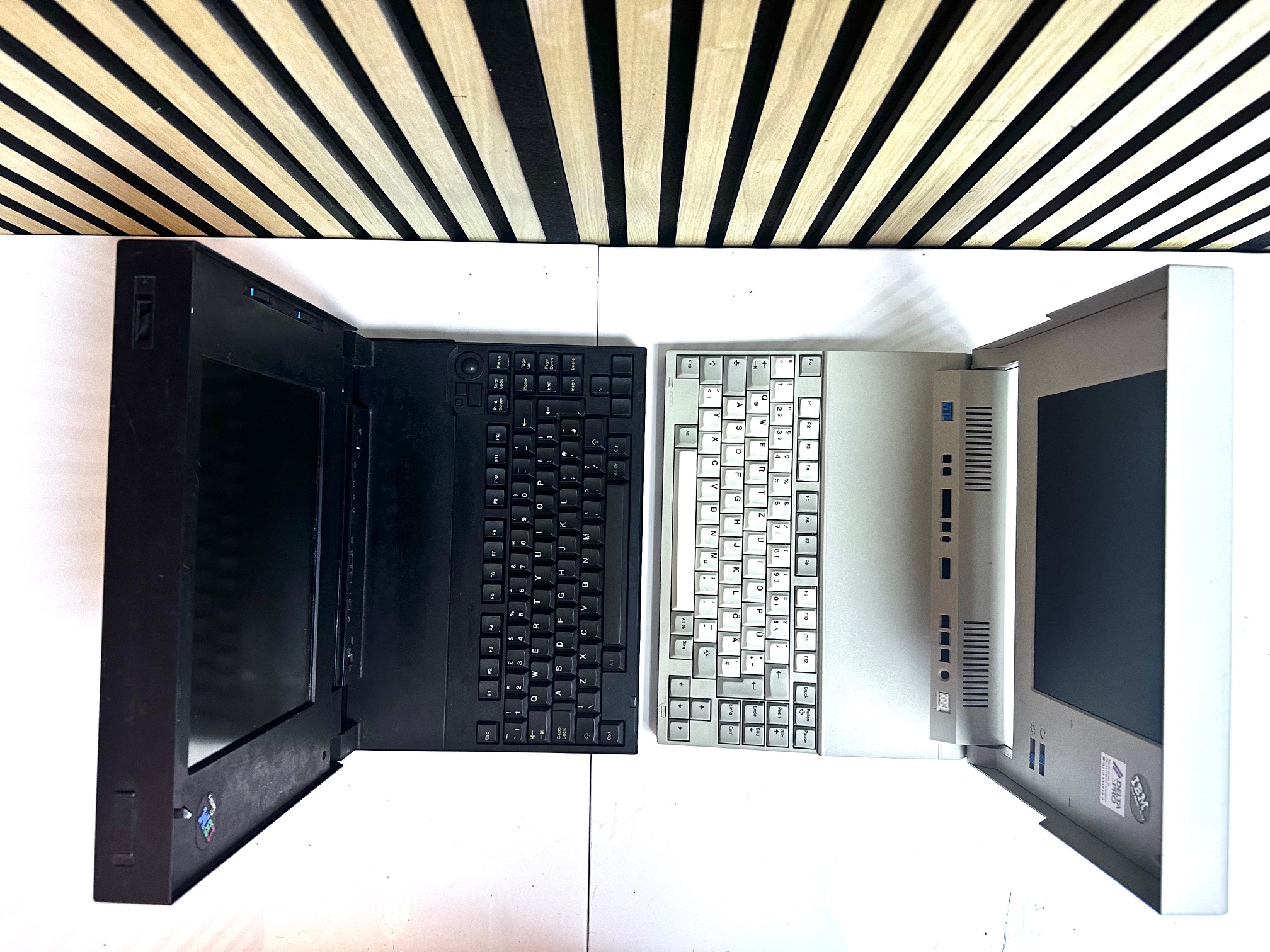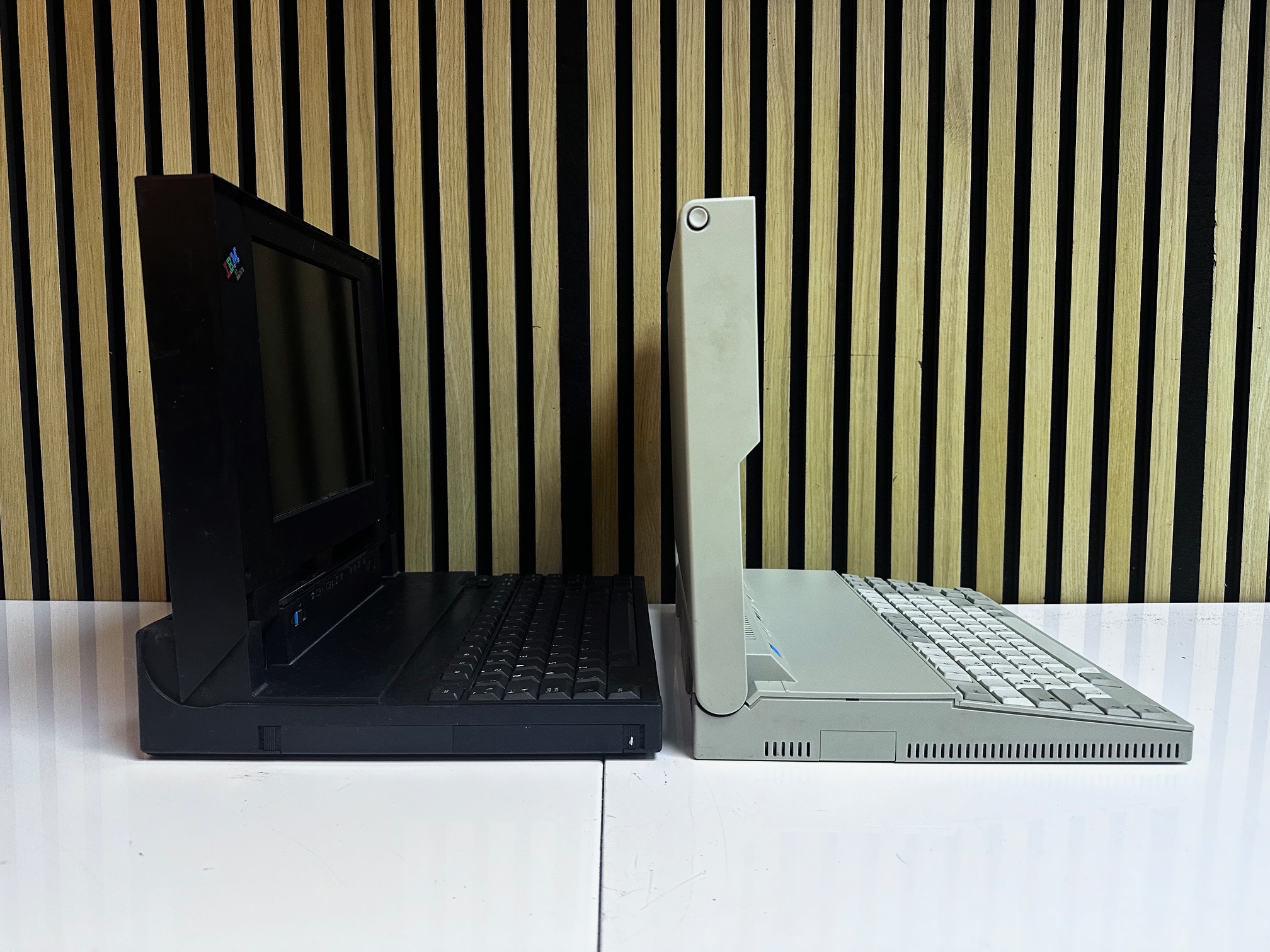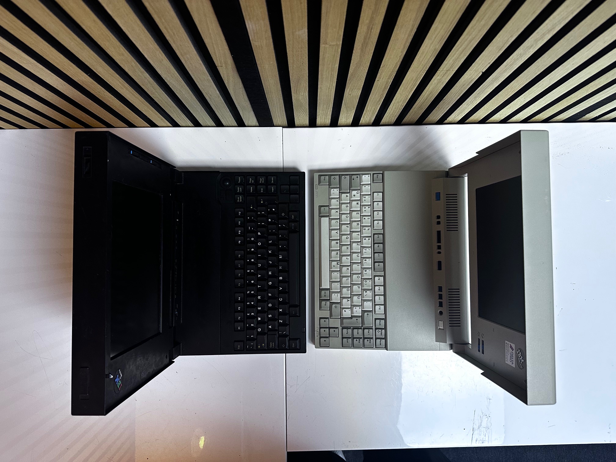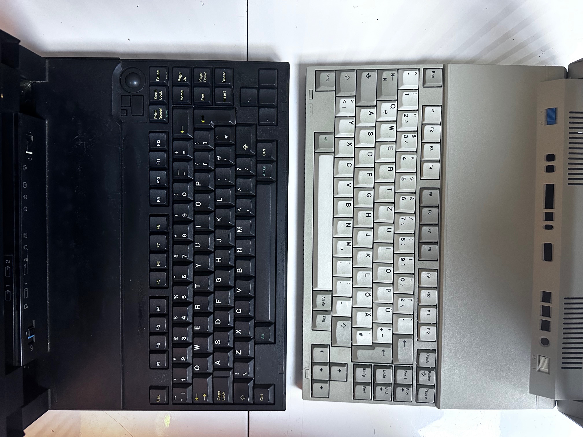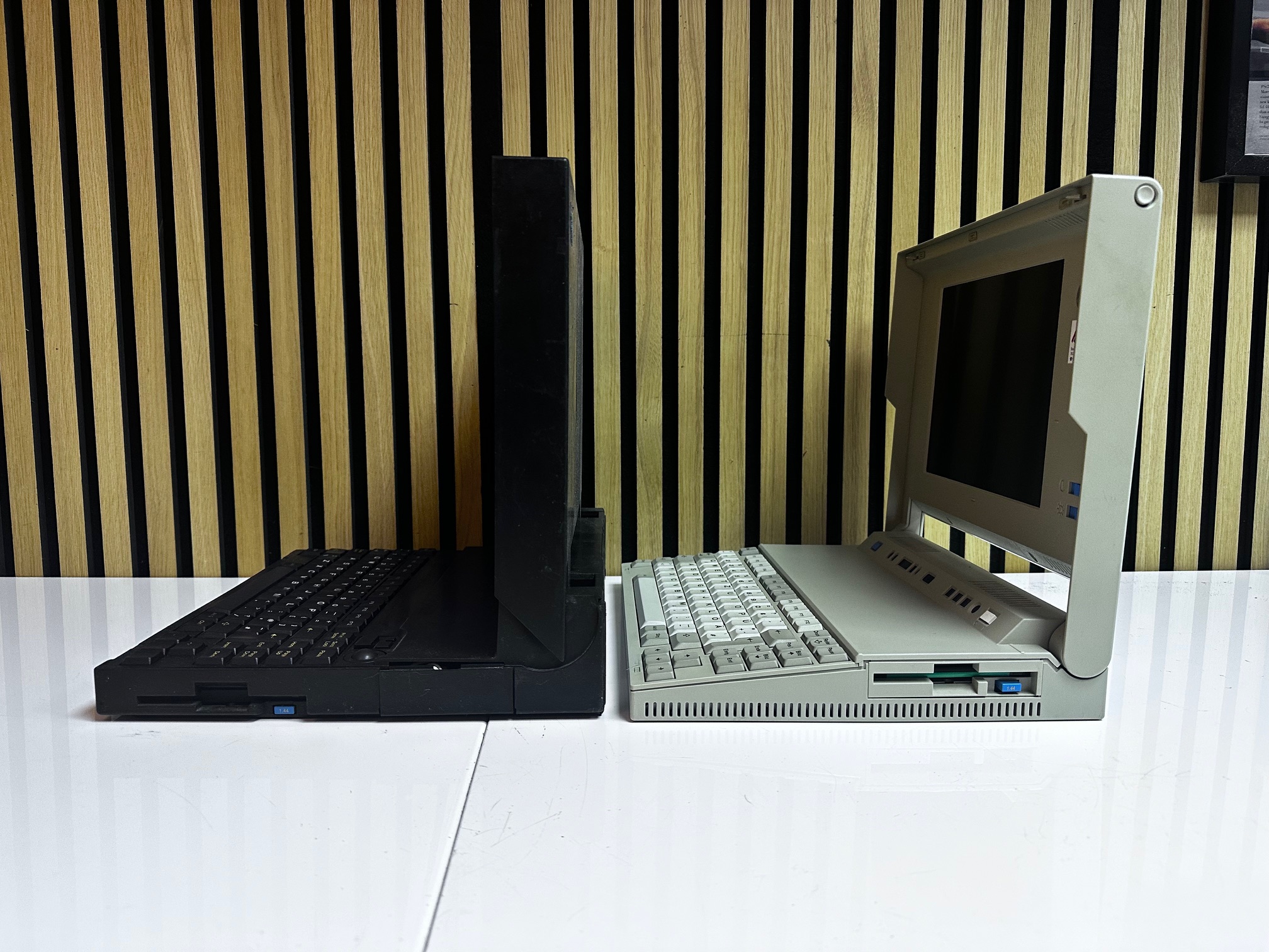 Here is a size comparison showing the 5523 PS/55 Note on the left and the CL57 on the right. The 5523 would have given it's right shift key for the TFT panel in the CL57 but it would have more than doubled the price and, at the time, would have never fit.