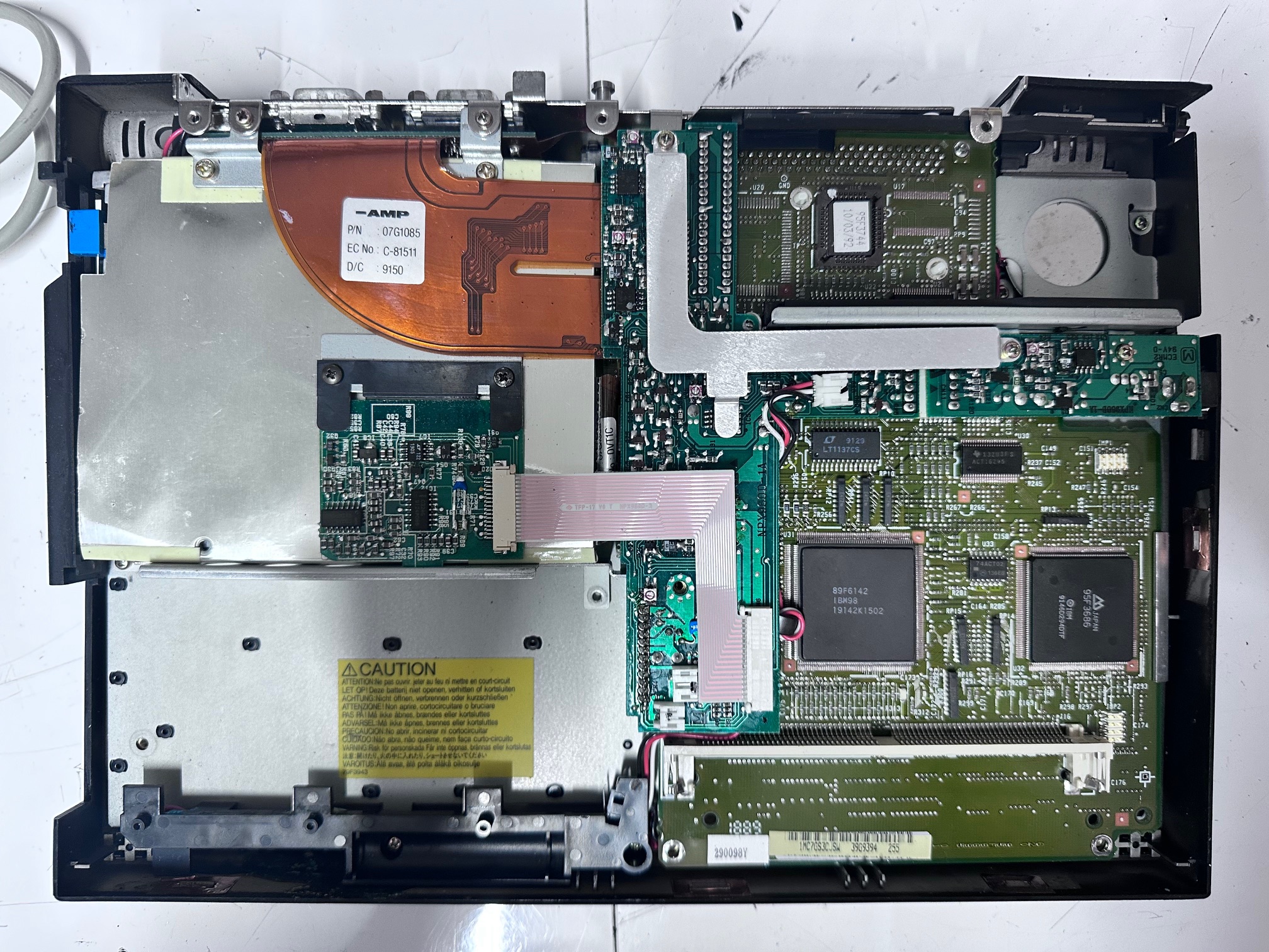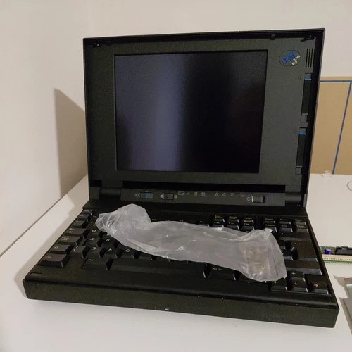 Here are some images of the N51 SLC which I managed to restore. Unfortunately, as with most N51 machines, the hinges cannot be used due to the aformentioned weakspots in their foundations. However as least it's preserved from any further damage from the hiberantion battery or from poisoned capacitors. The machine works great, and luckily the floppy drive worked great because it's necessary to boot these MCA machines from a reference disk if the CMOS battery is dead. It also had a 2Mb 72pin SIMM fitted.