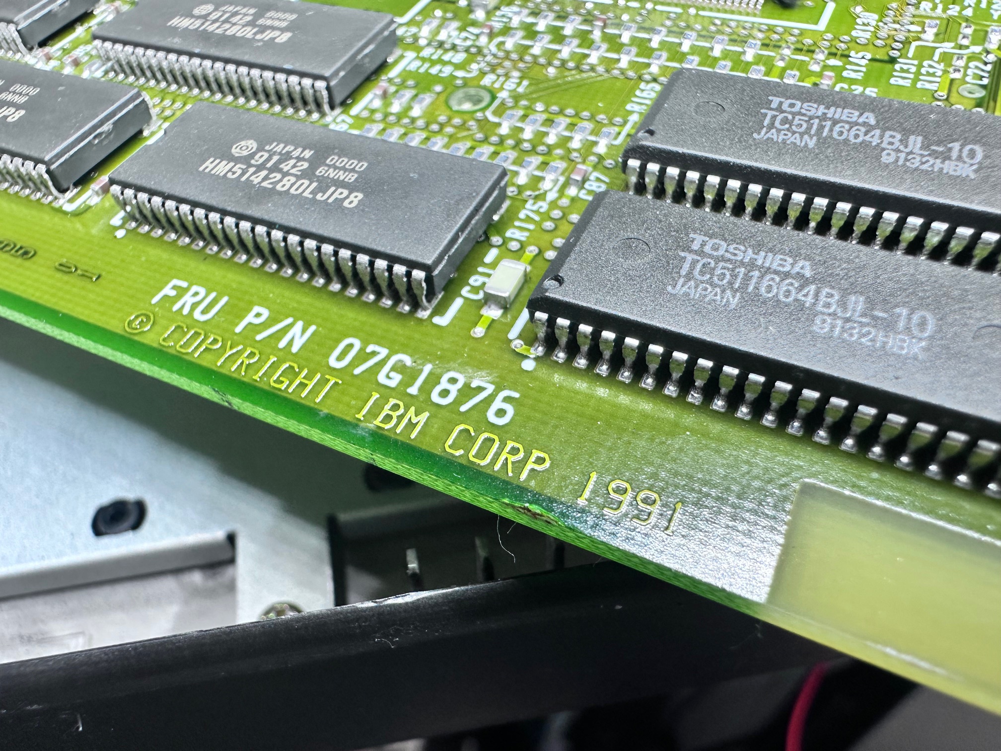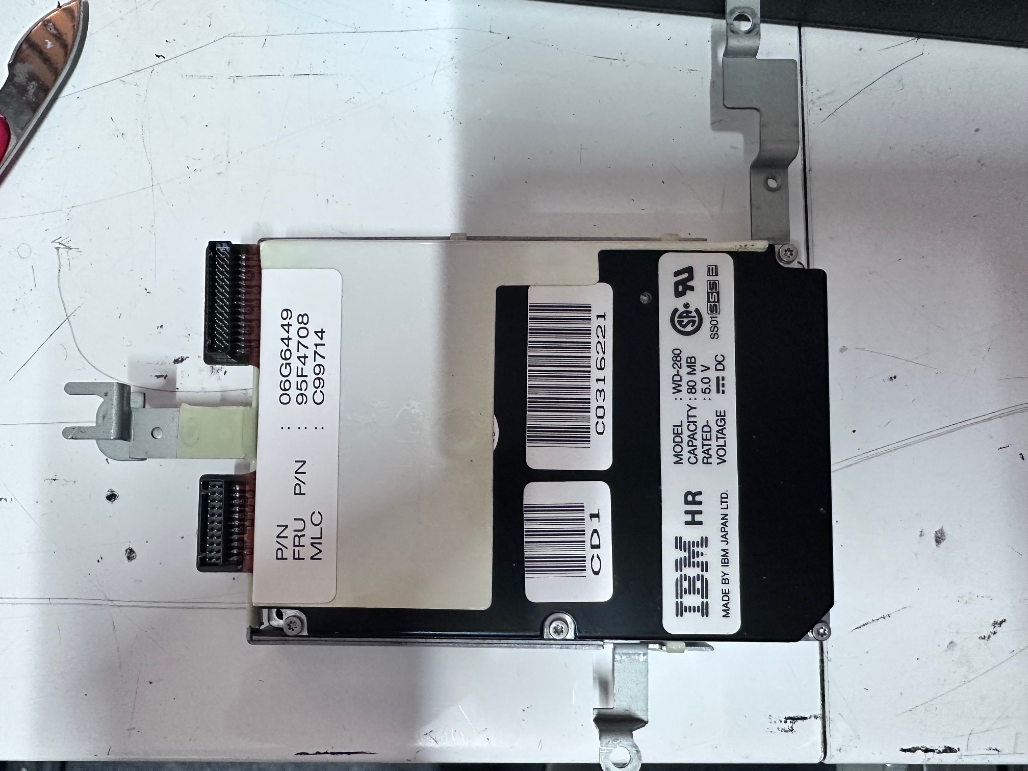 Also of note is the MCA-architecture hard drive which sits on this 3-way metal frame and has a very unique connnector which goes from the wide ESDI HDD connector into two push-fit connectors onto the motherboard. This is unique as far as I know because the prior PS/notes were all ISA and had a less complex connector and the follow up machines - C23V, M23V and C52/Thinkpad 700 all had docking hard drives with a special connector of it's own.