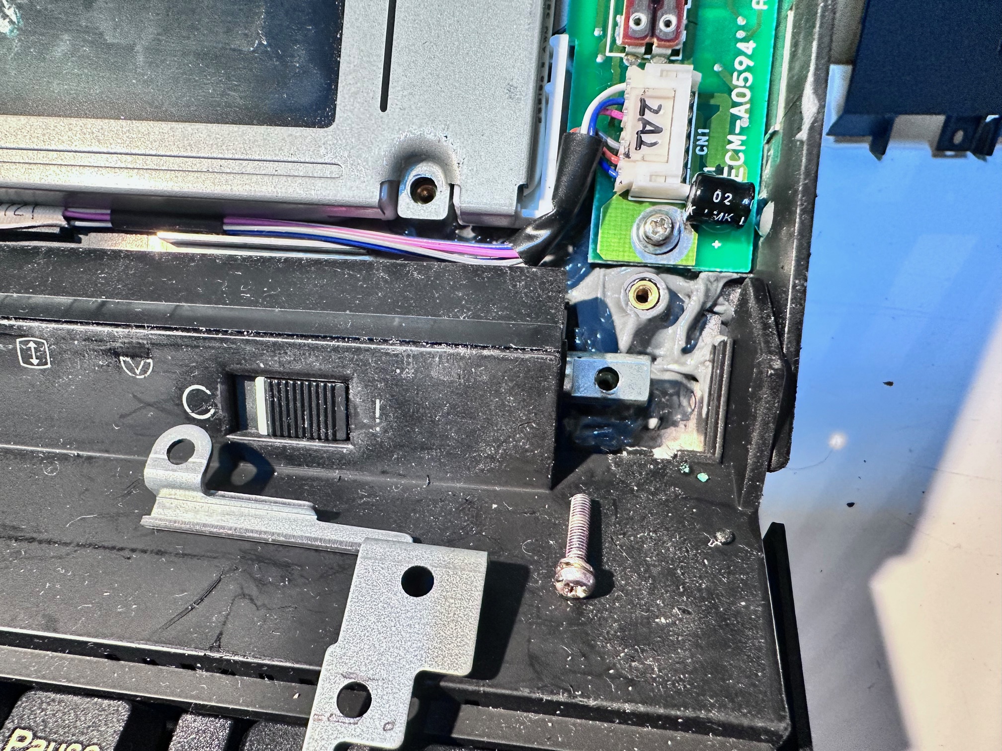 A big change from the original notes (including the N23, N33 and C23V) was the change from ISA bus to MCA, making this machine a little harder to restore. The hinges themselves are a nicer design than found in the note 2141-182, the Note 425 and the Thinkpad 350, but their bases still crack and let go and ideally should be reinforced.