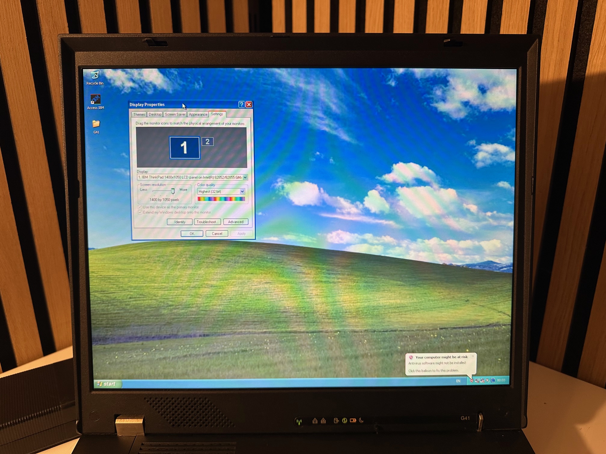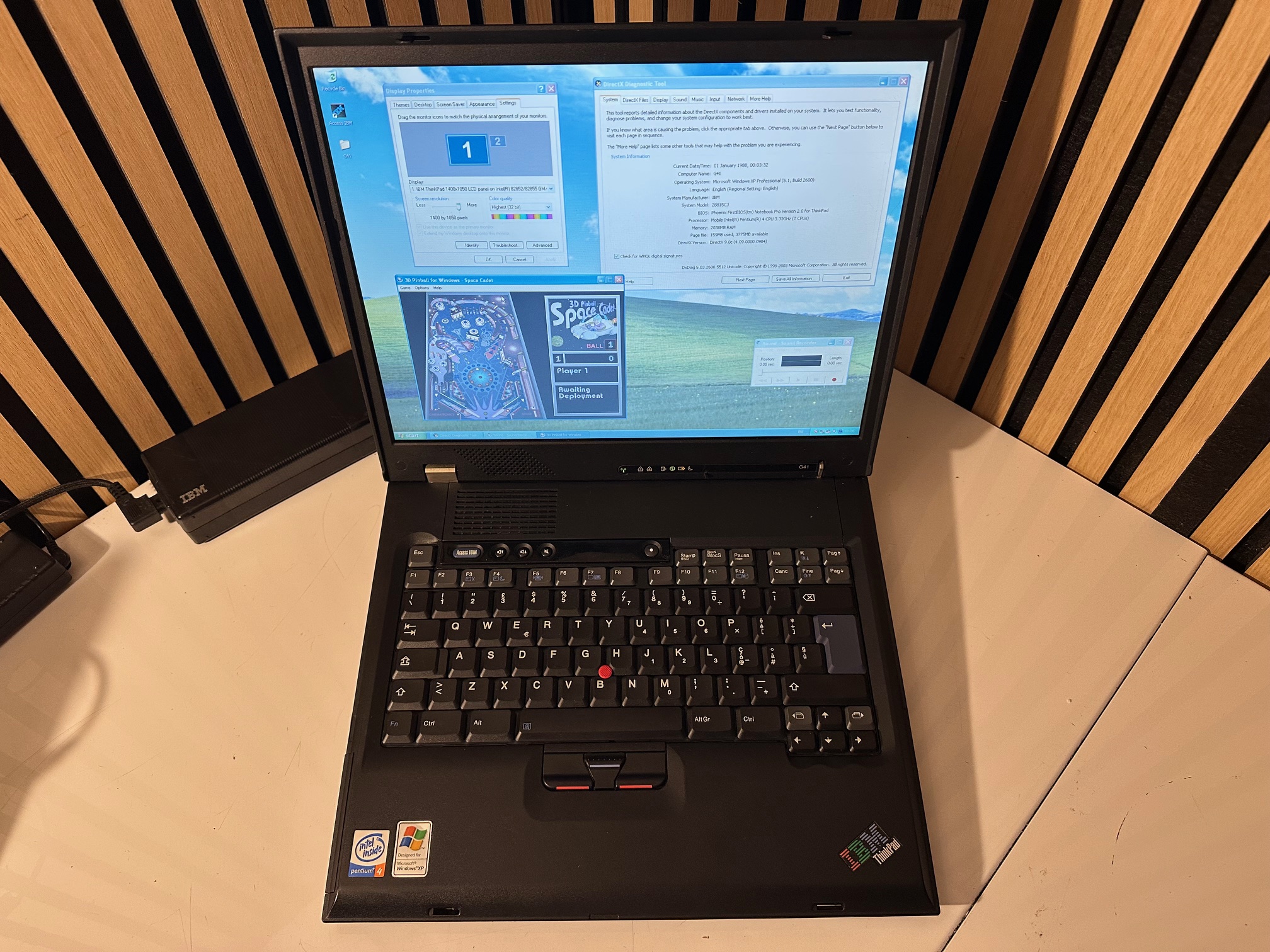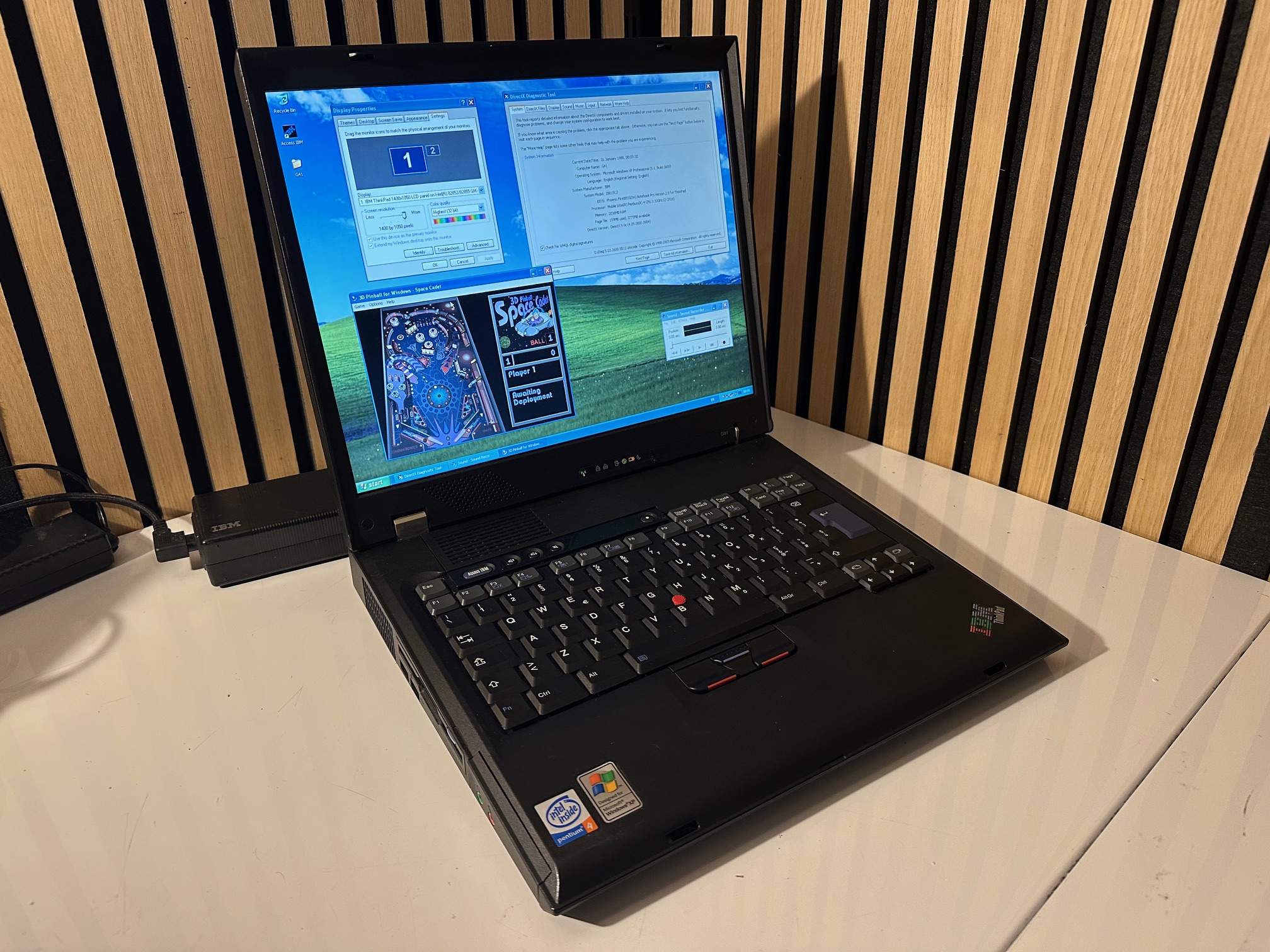 Here are some addition pictures I took of quite a high specification G41, which remains IBM-branded, with a 3.33Mhz P4 CPU, 2Gb RAM, DVD and 1400x1050 resolution - a real powerhouse, this IBM-branded Acer design continued in the transition from IBM to Lenovo but was somewhat upended by a mixture of the A-series, Z-series and R-series.