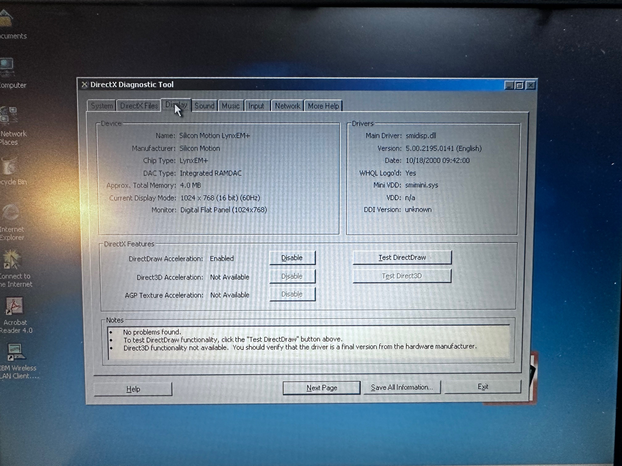 | Display Specs | 14.1" TFT sporting 1024x768 with 4Mb VRAM |