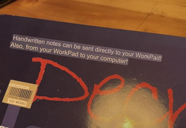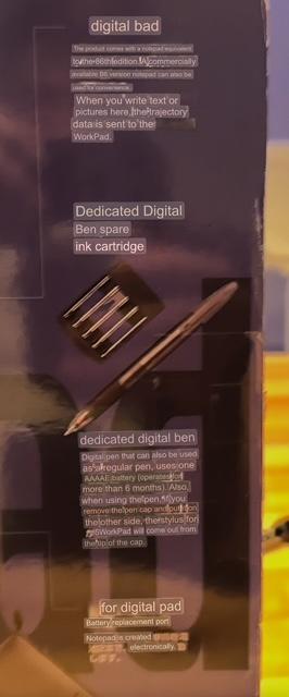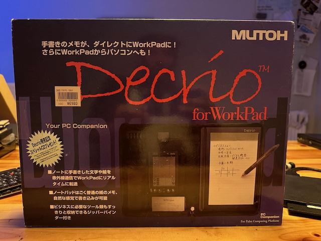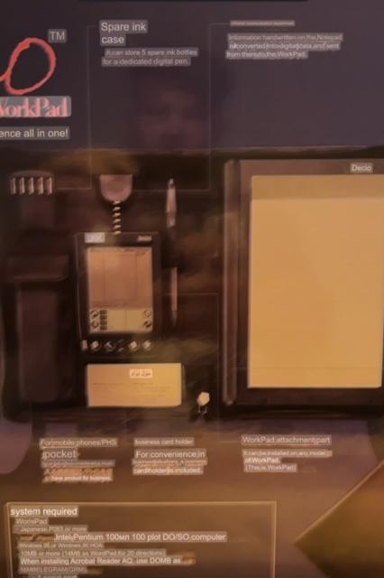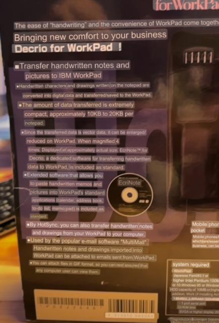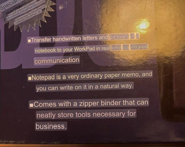 It's in mock IBM packaging - so much so, I thought it was IBM for a while. Supposedly you slot in your little Workpad and it will transcribe written text into notes on the wordpad.
